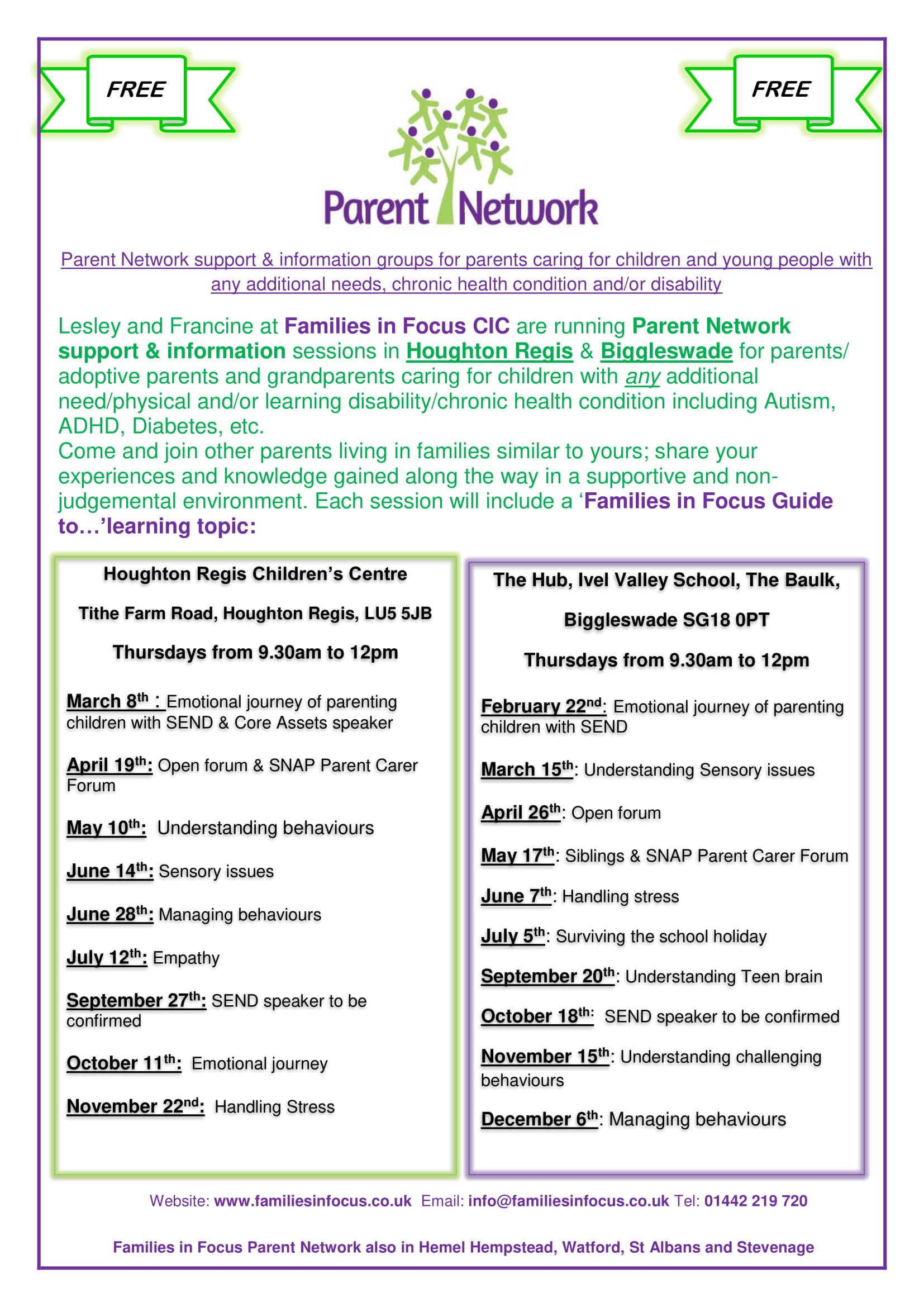 Families in Focus CIC Bedfordshire Parent Network April onwards-1
